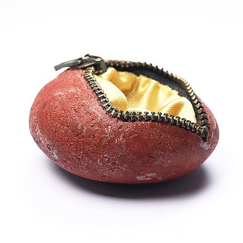 天然石にチャックをあしらった使った個性的なデザイン。内側サザレやルース、お気に入りの天然石をを入れて置物として部屋に飾ることが出来ます。