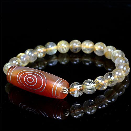〔K1784〕ルチルクォーツカーネリアン 金線銀線 炎観音一眼天珠(sv925)天珠 ブレスレット