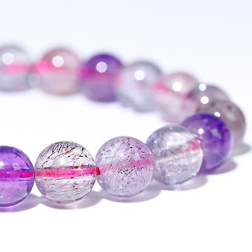 内包された鉱物同士のエネルギーは相乗効果的に働き、原石の段階で7種類が入っていれば、それら7種類のエネルギーすべてを持つと言われています。実際、内包されている鉱物の内容によって相当エネルギーの個体差が見られます。 全体的にルチルやヘマタイト系の要素が入っている為、宇宙意識と繋がる石と言われながらもグラウディングの力が強いものも多く、とてもバランスのとれた石です。これだけのエネルギーが強い石であるにもかかわらず、持つ人を選ばない石です。 潜在能力を開花させる力、そして総合的な運気を好転させる力の非常に強い石で、内観と調和を促進しながらエネルギーアップもできる珍しい石です。