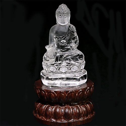 〔D433-6〕超透明 天然水晶釈迦如来 釈迦 お釈迦様 彫刻 置物 台付き【メール便】