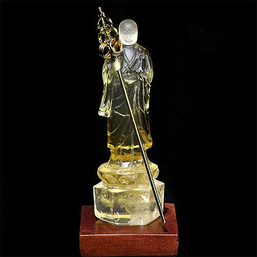 〔D433-3〕超透明 シトリン 地蔵菩薩 お地蔵様 彫刻 置物 台付き【メール便】