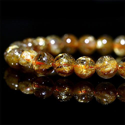 〔K1891-3〕約7.3mm タイチンルチルクォーツ ブレスレット Rutilated Quartz
