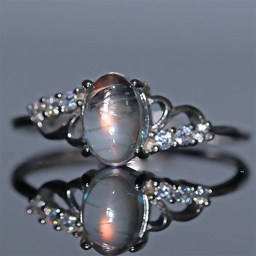 〔R443-8〕マダガスカル産 レインボームーンストーン リング 指輪 サイズフリー Rainbow moonstone