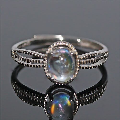 〔R443-7〕マダガスカル産 レインボームーンストーン リング 指輪 サイズフリー Rainbow moonstone