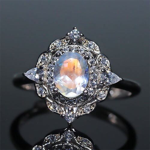 〔R443-1〕マダガスカル産 レインボームーンストーン リング 指輪 サイズフリー Rainbow moonstone