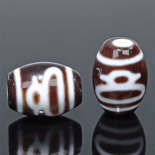 瑪瑙、玉髄、カーネリアンなどに特殊秘法の腐食加工を施し、染料を浸透させて、仏教的紋様を高温で焼き付けて作ります。仏の加護を得て、運勢を強化したい方に多く親しまれています。