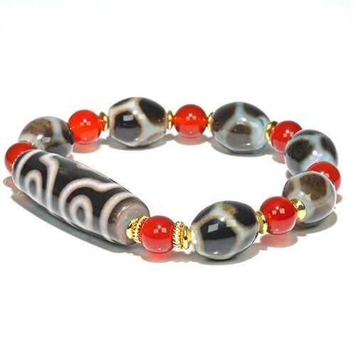 〔K2020-2〕三眼天珠 亀甲天珠 ブレスレット カーネリアン Agate【ランダム発送】