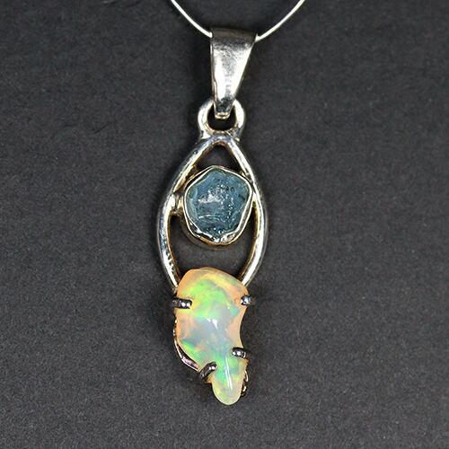 〔J368-15〕エチオピアンオパール アクアマリン sv925 宝石質原石ペンダントトップ opal aquamarine
