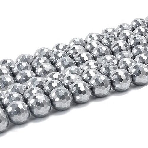 〔C1-194-8m〕約8mm 高純度テラヘルツ鉱石 高品質テラヘルツ ミラーボールカット ビーズ 連売り 連材 Terahertz