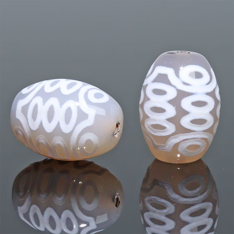 〔Z93-2〕【天珠】3個入り 約16x12mm 二十一眼天珠 白天珠 守り 開運 風水 【ランダム発送】