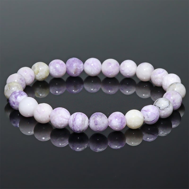 繊細なマーブル模様が特徴のハウライトを、美しいパープルカラーに仕上げたパープルハウライト。優雅な紫色は高貴さと精神性を象徴し、落ち着きと品格を演出してくれるブレスレットです。
