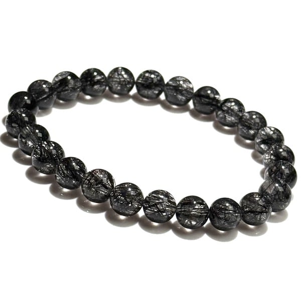 〔K2085-7〕高品質 約8mm 透明度が高い 迫力 ブラックルチルクォーツ ブレスレット