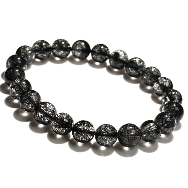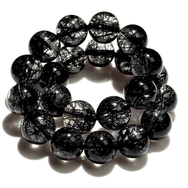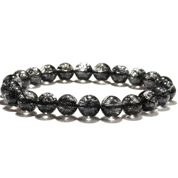 〔K2085-5〕高品質 約9mm 透明度が高い 迫力 ブラックルチルクォーツ ブレスレット