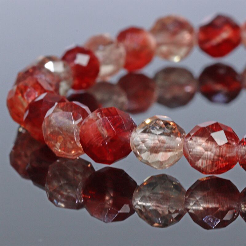 レッドやシャンパンカラーが混ざり合ったミックスアンデシンの多面カットブレスレットです。