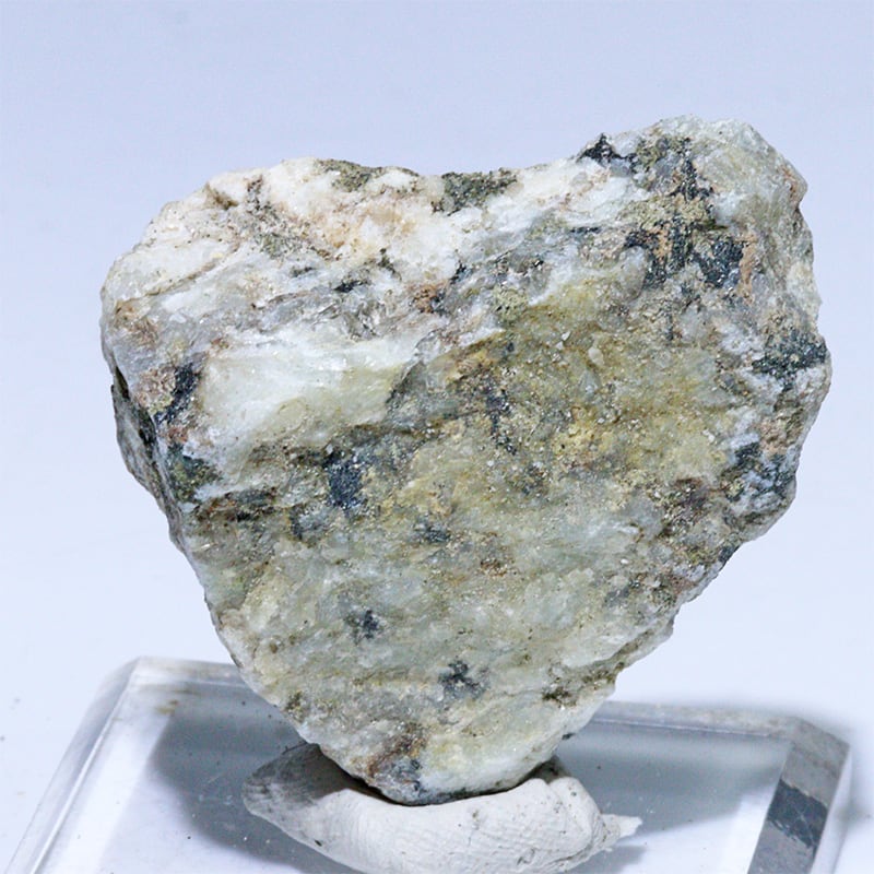 正確にはエジル石閃長岩で、黄緑色に見える部分が杉石です。その他新鉱物である片山石、村上石、フェロフェリホルムキスト閃石がこの石から発見されました。片山石についてはバラトバ石ではないかと今も議論され結論は出ていないミステリアスな石です。片山石と村上石は蛍光性を持っているといわれています。