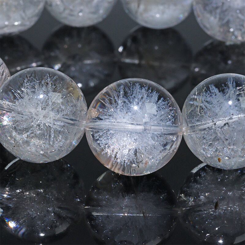 透明度の高い天然水晶に、特殊な加工を施すことで、内部に放射状の白い結晶模様を生み出しています