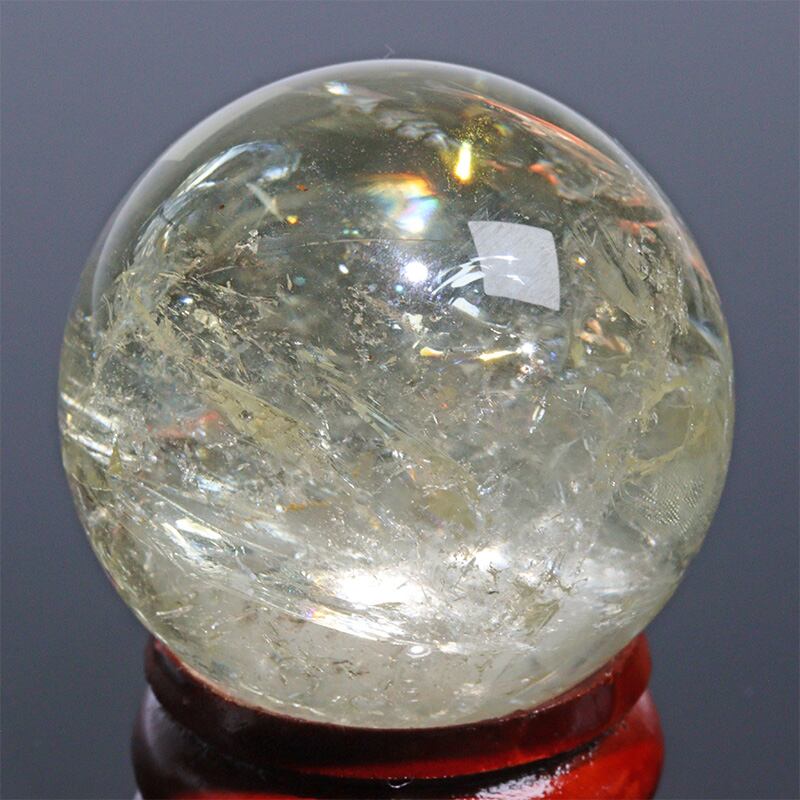 〔D471-15〕約31mm シトリン 虹入り スフィア Citrine 丸玉 黄水晶 置物 風水【メール便不可】