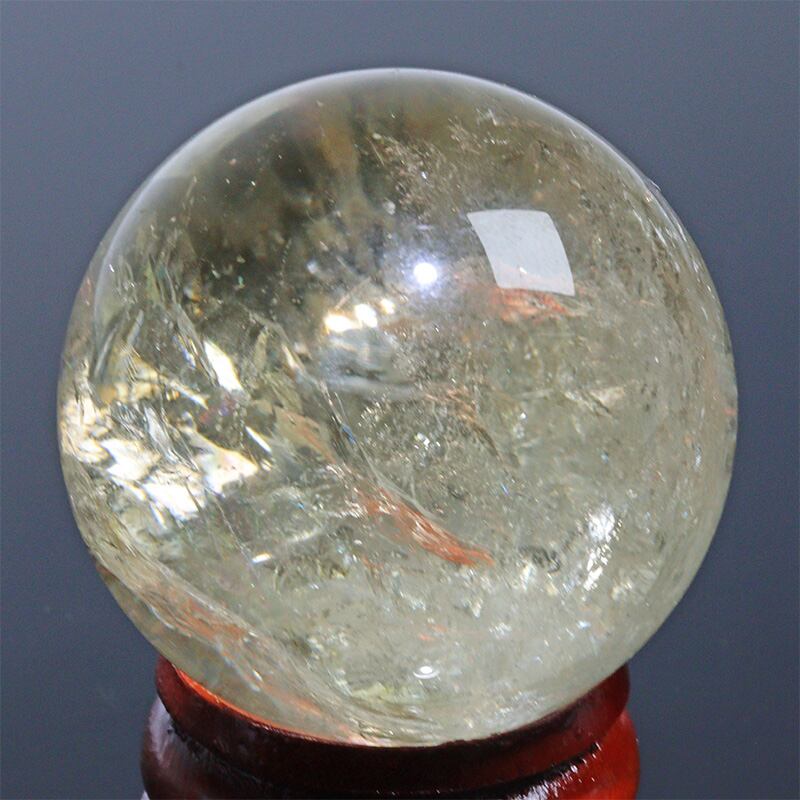 〔D471-9〕約33mm シトリン 虹入り スフィア Citrine 丸玉 黄水晶 置物 風水【メール便不可】