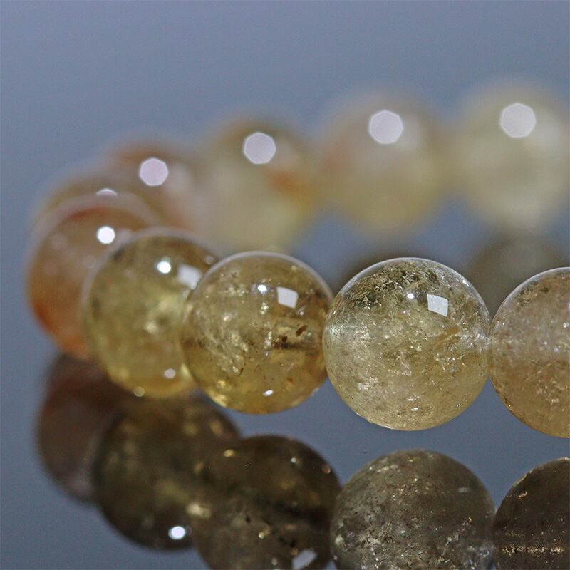 このブレスレット同士をそっと触れ合わせると、シャラシャラと澄み渡る高音の音色が響きます。その音はとても軽やかで透明感があり、まるで水晶が奏でる小さな鈴のような美しい響きです。