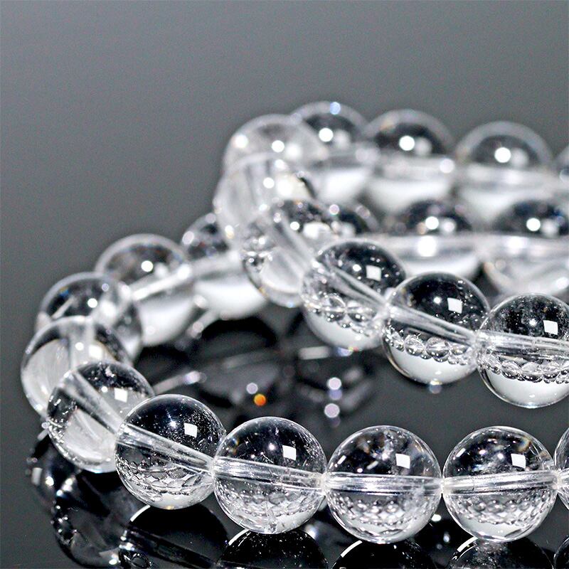 このブレスレット同士をそっと触れ合わせると、シャラシャラと澄み渡る高音の音色が響きます。その音はとても軽やかで透明感があり、まるで水晶が奏でる小さな鈴のような美しい響きです。