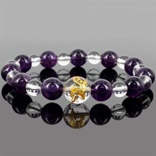 【サイズ】内周 約17cm :【素材】水晶四神 約12mm / アメジスト 約10mm / 水晶 約7.5mm