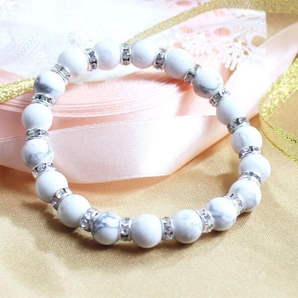 【サイズ】内周約16~16.5cm【素材】天然石玉約8mm【内訳】ロンデルタイプホワイトターコイズ(玉8mm)