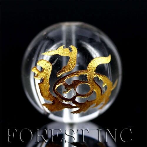 彫刻 粒売り 金彫 四神 水晶 14mm 1個 玄武〔I6-118-14genbu〕