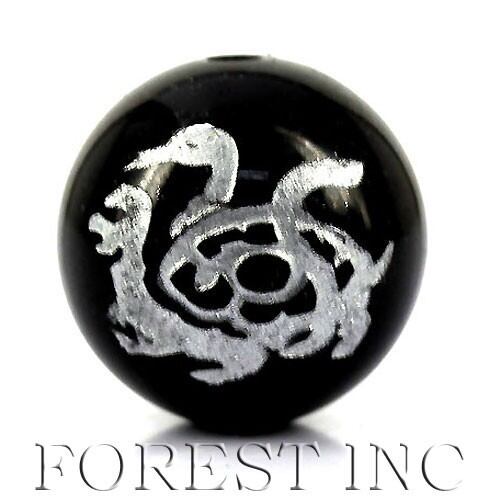 彫刻粒売り 銀彫 四神 オニキス14mm 1個 玄武〔I6-130-14genbu〕