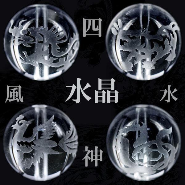 彫刻 粒売り 四神獣 水晶 4個セット 14mm I6-105-14m