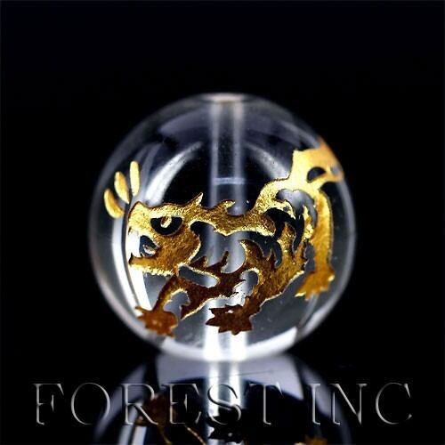 彫刻 粒売り 金彫 四神 水晶 14mm 1個 白虎〔I6-118-14tora〕