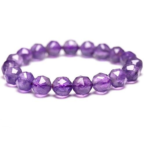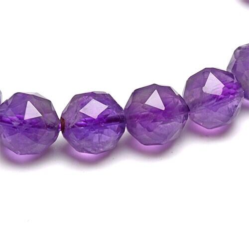 キラキラと光を反射するスターカットが施された、透明感もあり、2月の誕生石として有名なアメジストです。