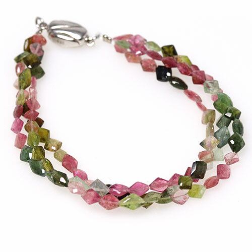〔K353〕マルチカラートルマリン カット 3連ブレスレット