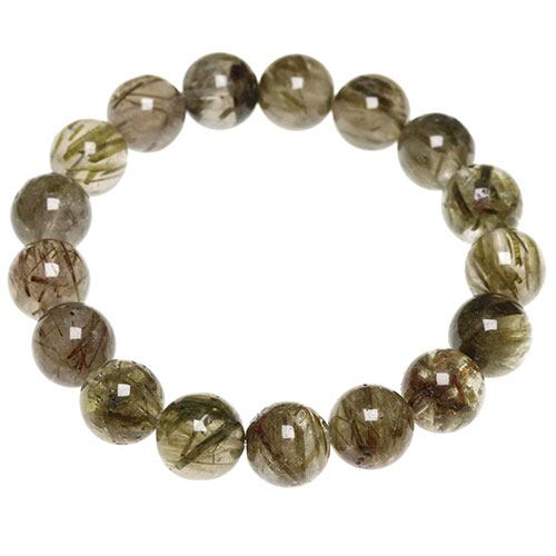 〔K437-9〕約12mm エピドートインクォーツ 緑簾石入り水晶 ブレスレット