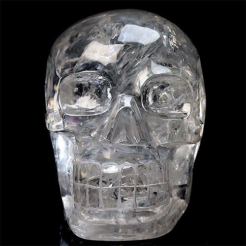 〔D17-13〕入手困難 極上品質 超透明 水晶 ドクロ クリスタルスカル 虹入り レインボー 骸骨 置物【メール便不可】