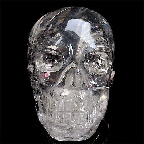 〔D17-12〕入手困難 極上品質 超透明 水晶 ドクロ クリスタルスカル 虹入り レインボー 骸骨 置物【メール便不可】