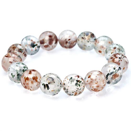 〔K1683-2〕高品質 約14mm オージャイト&スペサルティンガーネットインクォーツ ブレスレット 激レア共生 ブラジル産