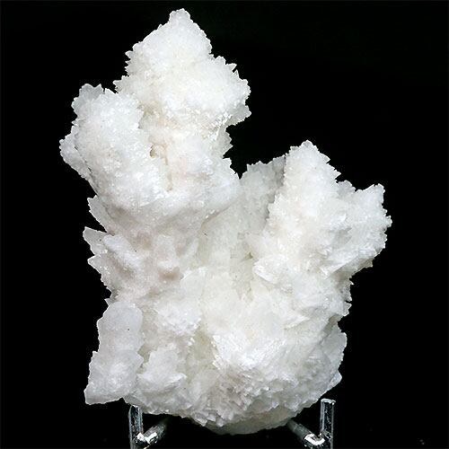 雪のような純白の結晶がキラキラと光を反射して、花のようにとても美しいアラゴナイト・フロスフェリです。