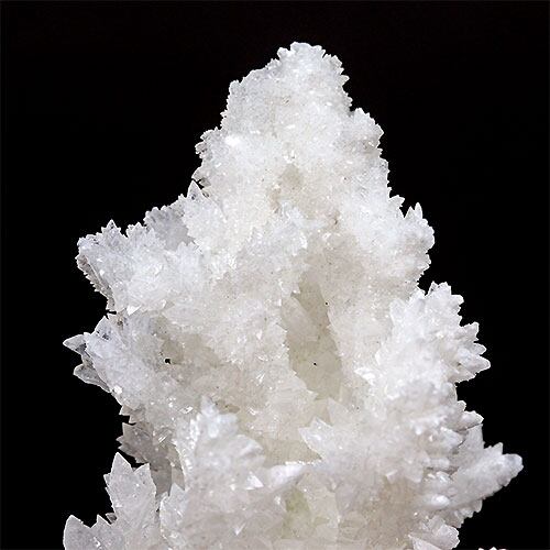 雪のような純白の結晶がキラキラと光を反射して、花のようにとても美しいアラゴナイト・フロスフェリです。
